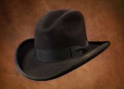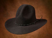 The hat, like his horse and his gun, was one of the Cowboy's most prized possessions. Sometimes as much as two weeks' wages would go towards a hat. It was not uncommon to purchase a hat with an open crown because it was a Cowboy's labor of love putting in those dents and creases himself. Let us not forget, however, that the hat was also a very practical part of the Cowboy's gear and the style and dimension of the crown and brim were often indications of what part of the country that fella was from. We've tried to offer a cross-section of hats from different locals and periods; choose one that fits your style, they're all custom-made for you, in the finest beaver fur felt.